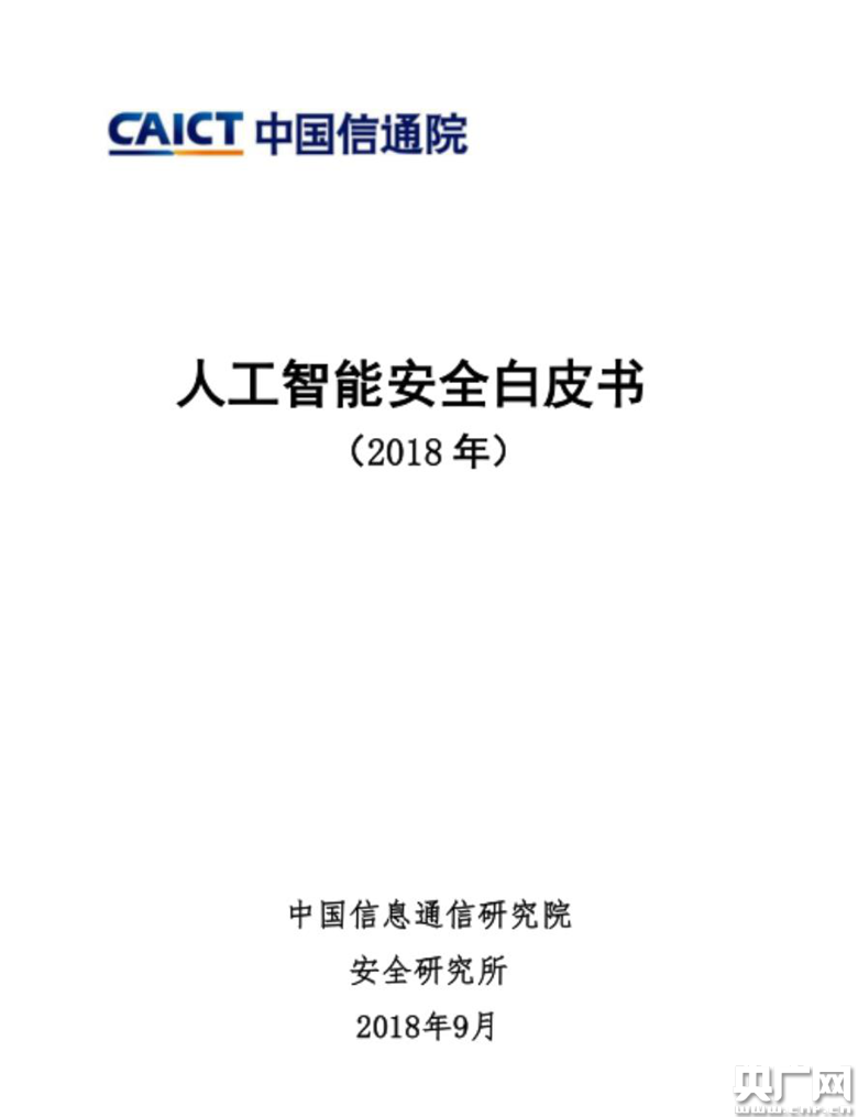 中國信息通信研究院安全研究所發(fā)布《人工智能安全白皮書》(央廣網(wǎng)發(fā) 世界人工智能組委會 供圖)