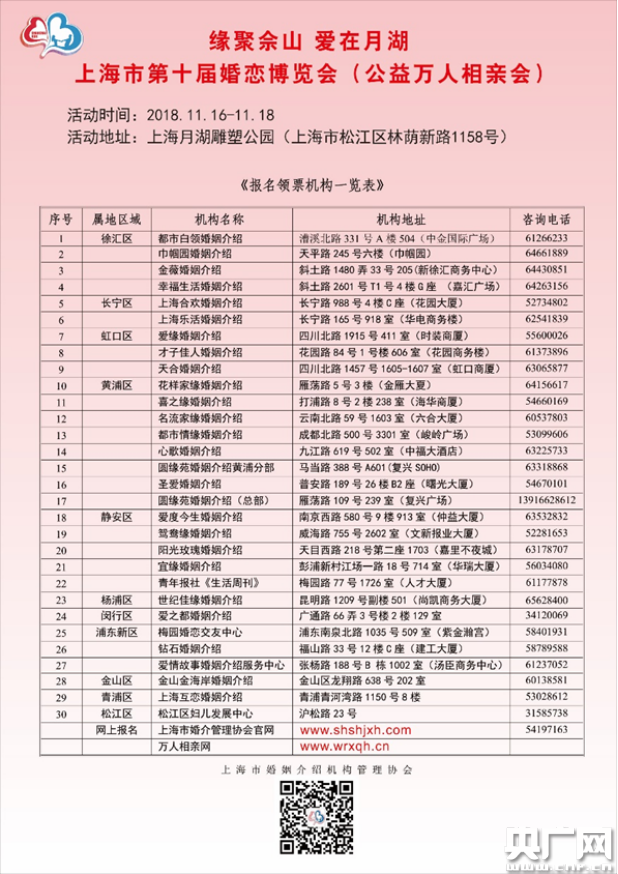 圖:第十屆上海市婚戀博覽會報名機構(gòu)一覽表。(央廣網(wǎng)發(fā) 上海市婚戀博覽會組委會 供圖)