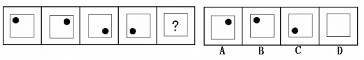 。ù鸢福築。黑點(diǎn)在正方形中順時(shí)針移動(dòng)。在第5個(gè)圖形中,應(yīng)該正好移動(dòng)到左上角。)