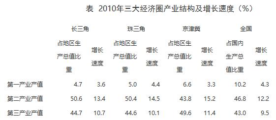 三大經(jīng)濟(jì)圈中,2010年三次產(chǎn)業(yè)增長速度均超過全國平均水平的有幾個(gè)?