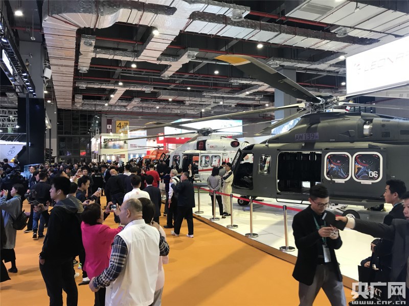 價(jià)值約2億元人民幣的意大利萊奧納多直升機(jī)。(央廣網(wǎng)記者 唐奇云 攝)