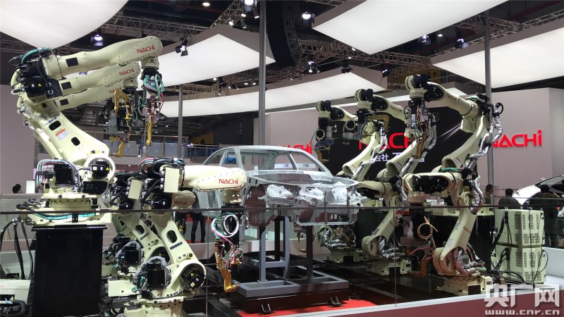 那智不二越循環(huán)演示高密度汽車電焊生產(chǎn)線。(央廣網(wǎng)記者 唐奇云 攝)