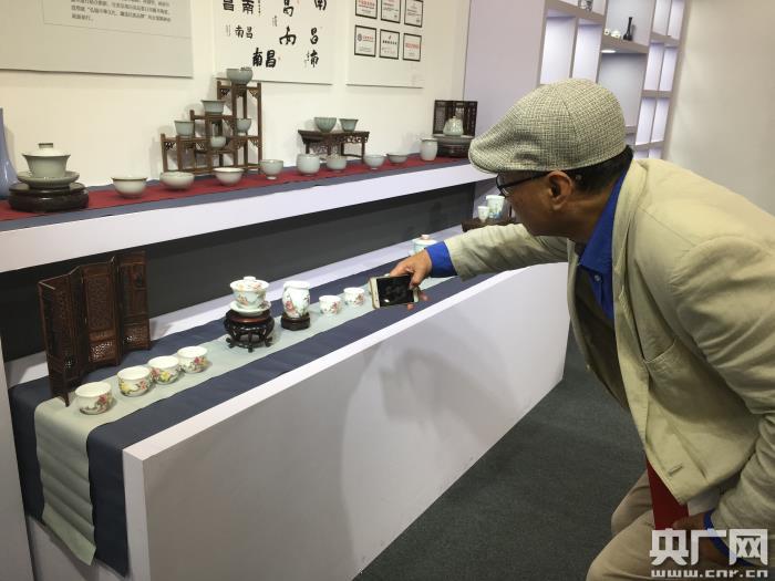 精美瓷器引起消費(fèi)者興趣。(央廣網(wǎng)記者 吳善陽 攝)