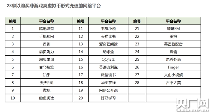 上海市消保委還對28家以購買非游戲類虛擬幣形式充值的網(wǎng)絡(luò)平臺開展了消費體察。