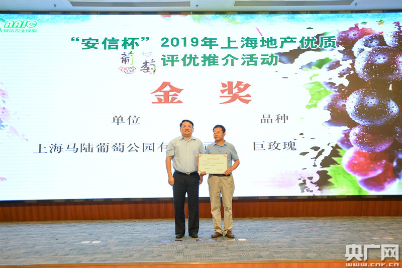 市郊涉農(nóng)9個區(qū)、光明集團從事葡萄生產(chǎn)的33家企業(yè)、合作社報名參與本次評優(yōu)活動,報名參評產(chǎn)品共計50個,均通過“三品”認(rèn)證;顒友垖<以u委和市民評委共同打分,葡萄的果穗、果粒,是不是均勻美觀;平均糖度是否達(dá)標(biāo),肉質(zhì)口感是不是細(xì)膩,最后包裝、追溯等流通指標(biāo),也是重要的考核標(biāo)準(zhǔn)。本次評優(yōu)活動特邀上海市農(nóng)產(chǎn)品質(zhì)量安全中心對報名參評的產(chǎn)品進(jìn)行采樣檢測,檢測通過的才有最終參評資格,保證了參評產(chǎn)品的質(zhì)量安全。最終,上海馬陸葡萄公園有限公司種植的巨玫瑰獲得金獎。上海市農(nóng)業(yè)農(nóng)村委副主任葉軍平為金獎獲得單位頒獎。