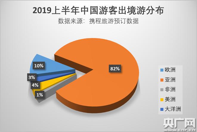 2019年上半年中國旅客出境游分布(央廣網(wǎng)發(fā) 攜程提供)