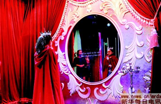 8月26日,在位于徐匯西岸會(huì)場(chǎng)的阿里巴巴人工智能館,小朋友在體驗(yàn)一款能根據(jù)表情進(jìn)行心理分析的“魔鏡”。新華社記者方喆攝