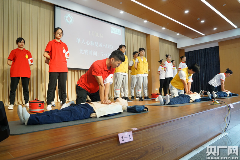 央廣網(wǎng)上海9月6日消息(記者楊靜 通訊員路琮瑋)上海市紅十字會(huì)于市紅十字備災(zāi)救災(zāi)中心今天(6日)舉辦2019年“世界急救日”主題宣傳活動(dòng)啟動(dòng)儀式暨上海市紅十字應(yīng)急救護(hù)大賽(決賽)!笆澜缂本热铡敝黝}宣傳系列活動(dòng)同時(shí)在全市范圍內(nèi)以多樣的形式開展,包括組織第二屆中國(guó)國(guó)際進(jìn)口博覽會(huì)紅十字志愿者現(xiàn)場(chǎng)應(yīng)急救護(hù)培訓(xùn)演練,在地鐵等公共場(chǎng)所播放應(yīng)急救護(hù)宣傳片等。