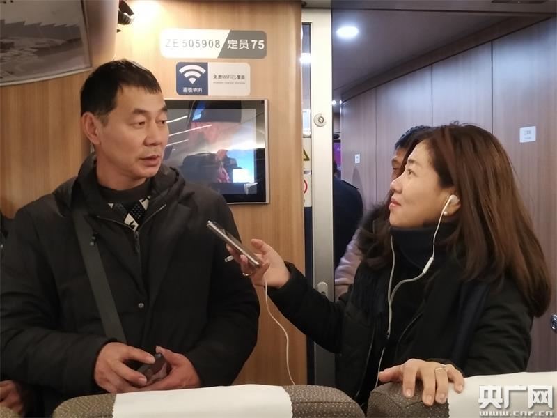 央廣記者采訪搭乘首趟春運團體包車的返鄉(xiāng)務(wù)工人員(央廣網(wǎng)記者 林馥榆 攝)
