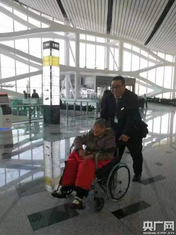 中國(guó)聯(lián)合航空地服人員保障無(wú)陪伴老人登機(jī)(央廣網(wǎng)發(fā) 東航供圖)