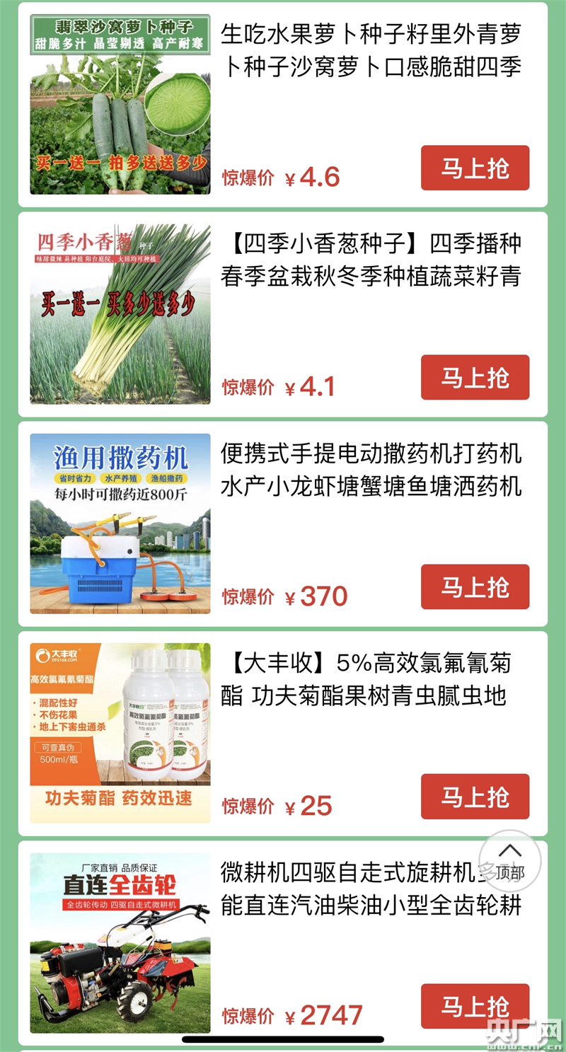 “春耕節(jié)”期間,在品牌直供的基礎(chǔ)上,拼多多還將對(duì)種子、化肥、農(nóng)藥等生產(chǎn)物資實(shí)施最低20%的平臺(tái)補(bǔ)貼,部分農(nóng)機(jī)農(nóng)具的補(bǔ)貼力度超過1000元(央廣網(wǎng)發(fā) 拼多多供圖)