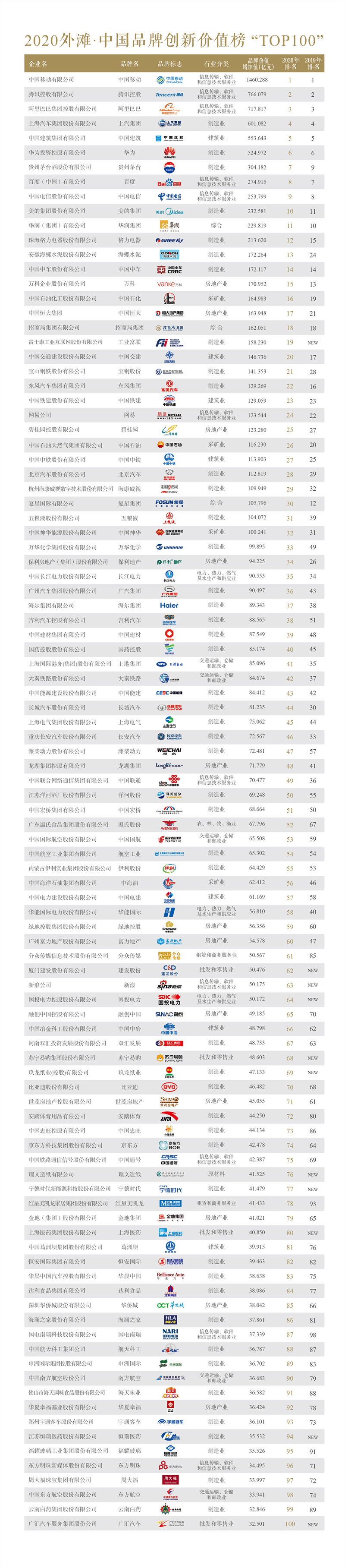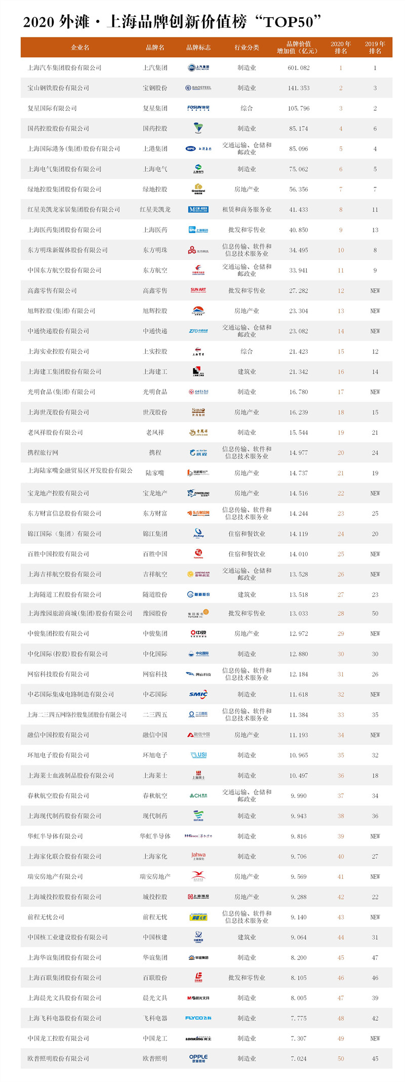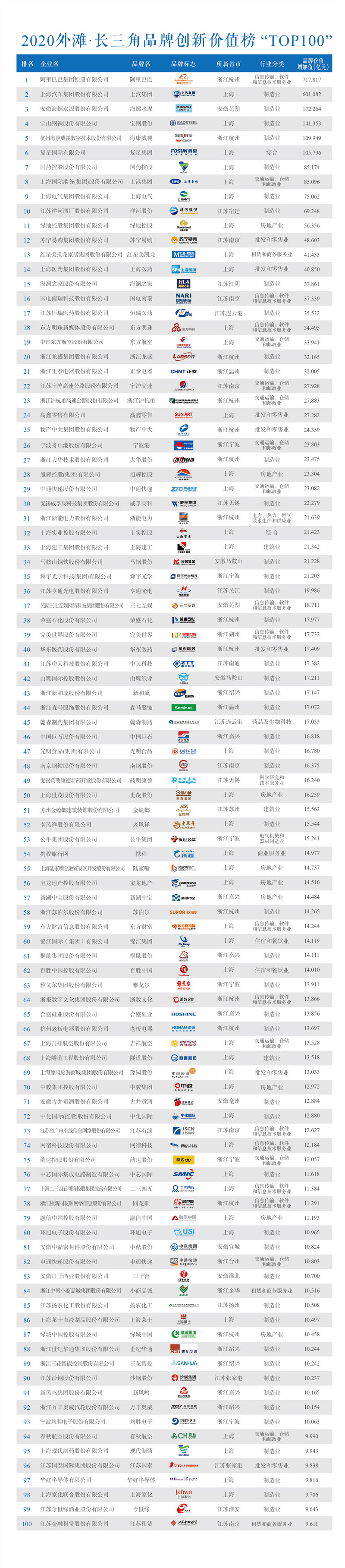 今年,為更好的助推國家長三角發(fā)展戰(zhàn)略和上!八拇笃放啤苯ㄔO(shè),首次發(fā)布了“2020年外灘·長三角品牌創(chuàng)新價(jià)值榜(TOP100)”和再次發(fā)布“2020年外灘·上海品牌創(chuàng)新價(jià)值榜(TOP50)”。