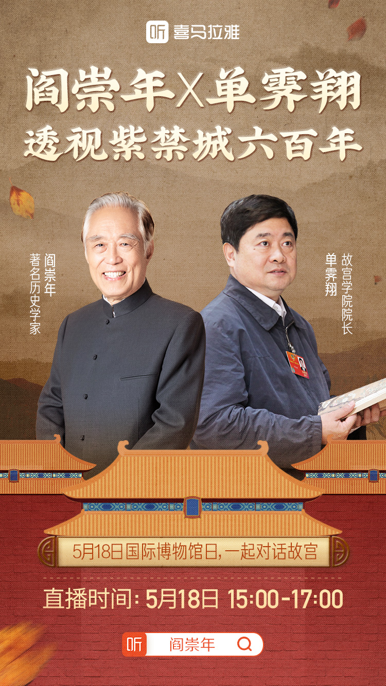 央廣網(wǎng)上海5月18日消息(記者周洪)5月18日世界博物館日,著名歷史學(xué)家閻崇年在喜馬拉雅的音頻節(jié)目《閻崇年:大故宮600年風(fēng)云史》由青島出版社出版,同名新書正式對外發(fā)售。新書首發(fā)式將在喜馬拉雅直播,閻崇年與故宮學(xué)院院長單霽翔“透視紫禁城六百年”,一同回顧六百年來故宮如何影響了一代代人們的記憶、審美、文化和日常生活。