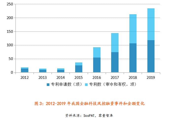 在專利方面,根據(jù)SooPAT數(shù)據(jù)顯示,自2014年開(kāi)始,國(guó)內(nèi)與金融科技風(fēng)控相關(guān)的專利申請(qǐng)持續(xù)上升。2014年金融科技風(fēng)控專利申請(qǐng)數(shù)為10項(xiàng),2019年申請(qǐng)數(shù)達(dá)到118項(xiàng),5年間專利申請(qǐng)數(shù)年復(fù)合增長(zhǎng)率達(dá)63.82%。其中,在2012年至2019年間,阿里巴巴及支付寶共申請(qǐng)27項(xiàng)金融科技風(fēng)控專利,涉及支付、投資決策、賬戶安全、信貸等場(chǎng)景應(yīng)用,是申請(qǐng)專利最多的企業(yè)。