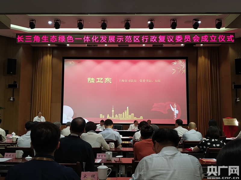 成立儀式上,上海市司法局黨委書記、局長陸衛(wèi)東,江蘇省司法廳黨委副書記、廳長柳玉祥,浙江省司法廳黨委書記、廳長馬柏偉,安徽省司法廳黨委書記、廳長姜明代表四地司法廳(局)簽署了包括《關(guān)于聯(lián)合組建長三角生態(tài)綠色一體化發(fā)展示范區(qū)行政復(fù)議委員會(huì)的意見》在內(nèi)的合作協(xié)議,為示范區(qū)復(fù)議委員會(huì)揭牌,并向與會(huì)委員頒發(fā)聘書。