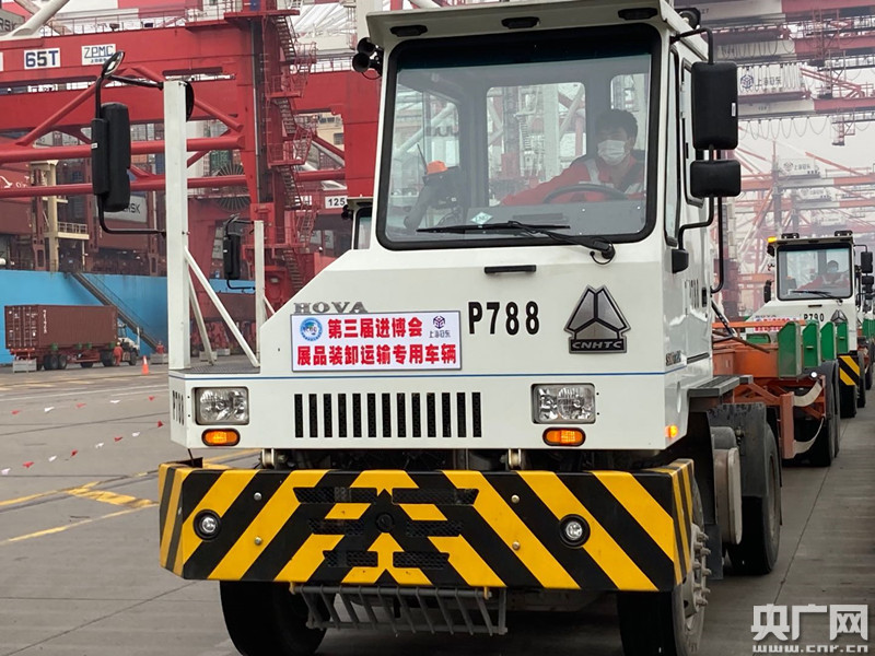為了讓展品能盡快卸運(yùn)中轉(zhuǎn),上海冠東國(guó)際集裝箱有限公司提前安排了十輛集裝箱卡車在港口待命并在堆場(chǎng)劃分了進(jìn)博會(huì)專用箱區(qū)位。洋山邊檢等口岸查驗(yàn)單位加強(qiáng)協(xié)作配合,在嚴(yán)密疫情防控措施前提下,建立了從船舶預(yù)報(bào)到抵港查驗(yàn)再到裝卸作業(yè)無縫銜接的保障機(jī)制,通過預(yù)先排查、泊位候檢等措施,讓貨等人變成人等貨,保障展品通關(guān)流程的零延時(shí)、零等待。