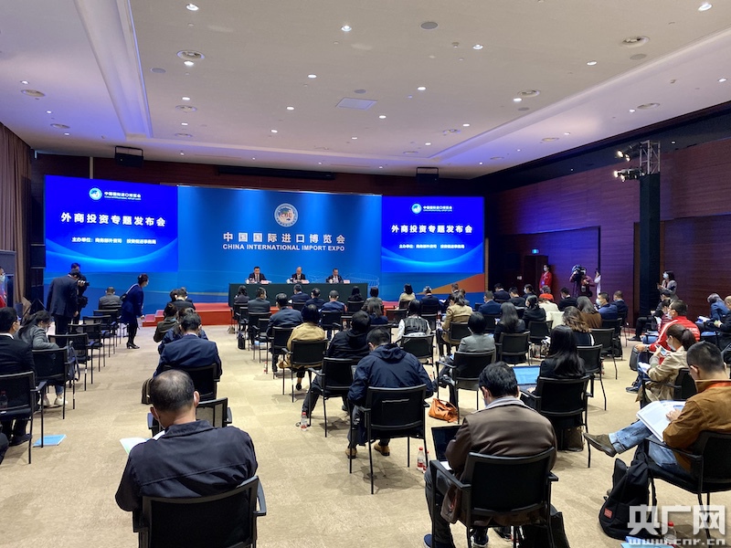 11月5日,商務(wù)部外資司在第三屆中國國際進(jìn)口博覽會上發(fā)布《中國外資統(tǒng)計公報2020》(央廣網(wǎng)記者 唐奇云 攝)
