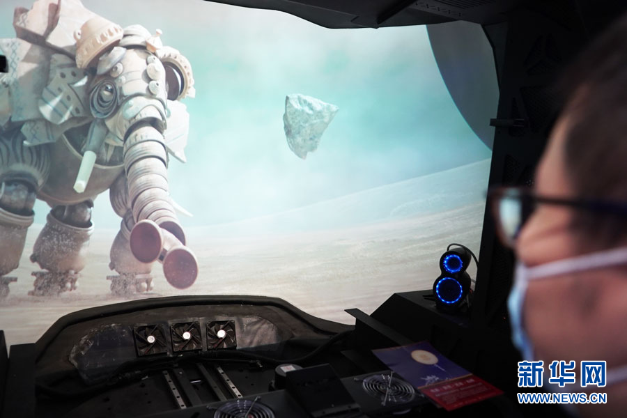 參觀者坐在藍碩沉浸式超時空飛行器中體驗奇幻的“瓷生物世界”。新華網(wǎng)馮麗 攝