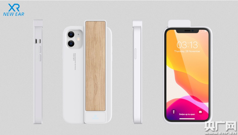 這款手機(jī)殼可隔絕空氣通過顱骨將聲音直接從內(nèi)部傳給聽覺神經(jīng)。因此你將不需要再用耳朵聽,只要將手機(jī)殼靠在頭上任意部位,就可獲得清晰的聲音。在連接方式上,“新耳”采用藍(lán)牙連接,隨用隨連。使用時(shí)只要將手機(jī)殼輕輕靠在頭上即可。