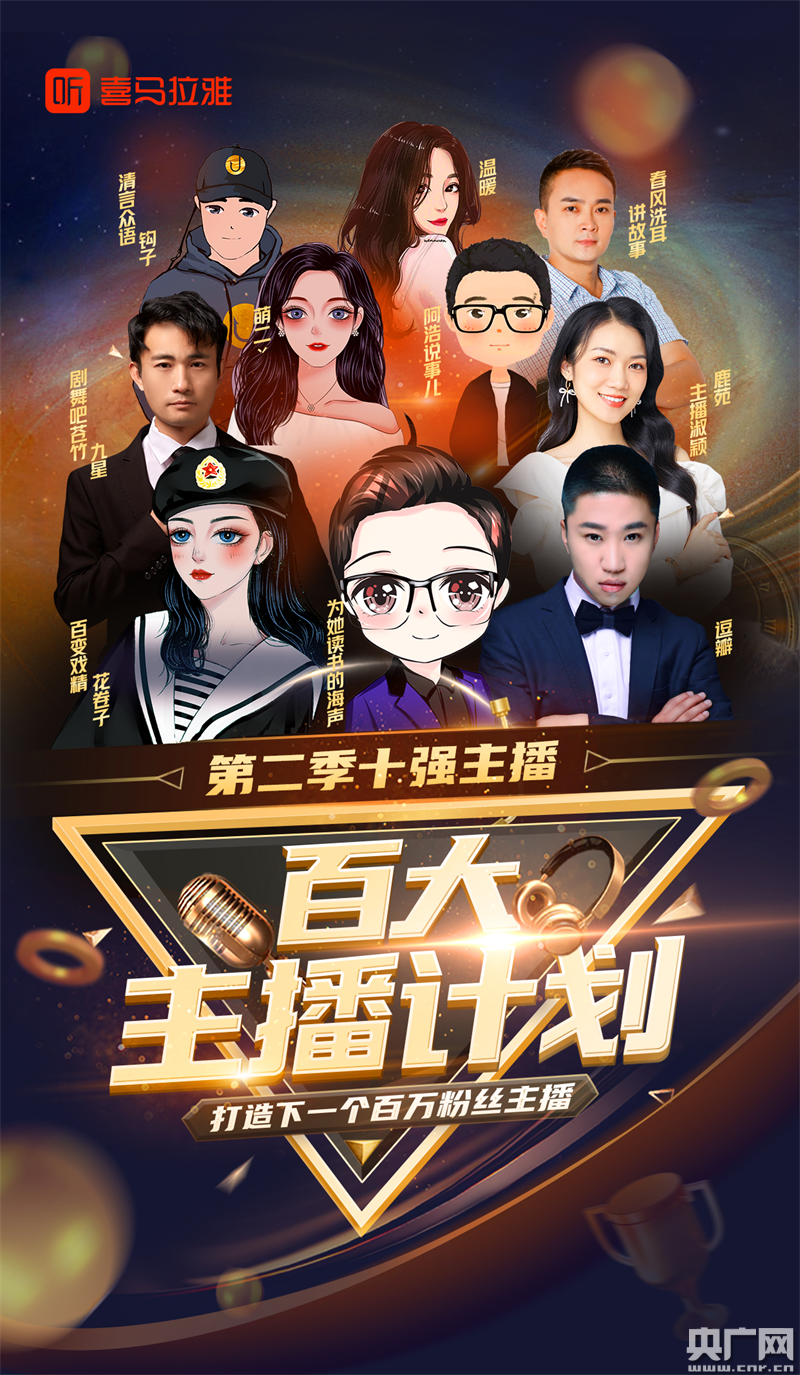 “百大主播計劃”由喜馬拉雅直播于2020年9月發(fā)起,為期一年,將通過尋找100種獨特的聲音,造血100名潛力主播,組成“百大主播”強大陣營,進一步賦能平臺主播出圈與商業(yè)變現(xiàn),打造優(yōu)質(zhì)多元的內(nèi)容生態(tài)。第一季10強主播在喜馬拉雅“直播+錄播”一體化策略的扶持下,用戶收聽數(shù)據(jù)較扶持前已翻倍。第二季比賽以“以聲繪世界”為主題,持續(xù)面向全網(wǎng)征集優(yōu)質(zhì)好聲音,尋找人氣與實力并存的聲音偶像。