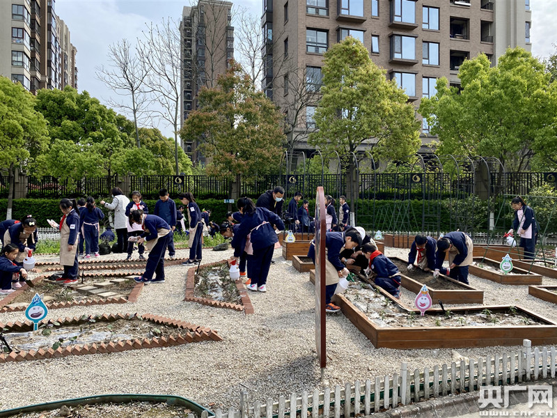 走進(jìn)上海市徐匯實(shí)驗(yàn)小學(xué)的校門沒幾步,就看到一群三年級(jí)的學(xué)生在一小片田地里忙得不亦樂乎。仔細(xì)觀察后可以發(fā)現(xiàn),這片小菜園被有序分成了多個(gè)區(qū)域,分別種著辣椒、茄子、香菜、黃瓜、番茄等農(nóng)作物的幼苗,學(xué)生們正在課程中充分參與翻土、施肥、澆水等多個(gè)環(huán)節(jié)。
