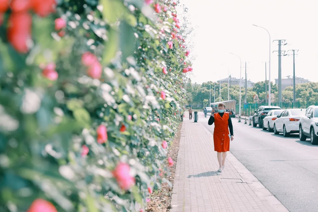 月季被稱為花中皇后,和薔薇一樣同屬薔薇科。在真新街道,有一面被“誤會(huì)”的花墻,近500平方米的灰墻上栽著安吉拉月季,成群的粉色花朵從萬綠叢中爭(zhēng)相探頭來、簇?fù)黹_放。路過這里,小嘉感覺自己的少女心爆棚啦!
