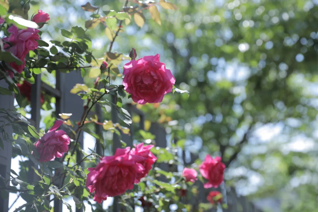 嘉定老城區(qū)的中心路段,一大片薔薇花隱匿在居民住宅樓前,繞過綠色的柵欄,努力向來往市民傳達(dá)盎然的春意。無須特意駐足,醉人的清香也會(huì)隨著微風(fēng)沁入心脾,為你抹去工作的疲憊。