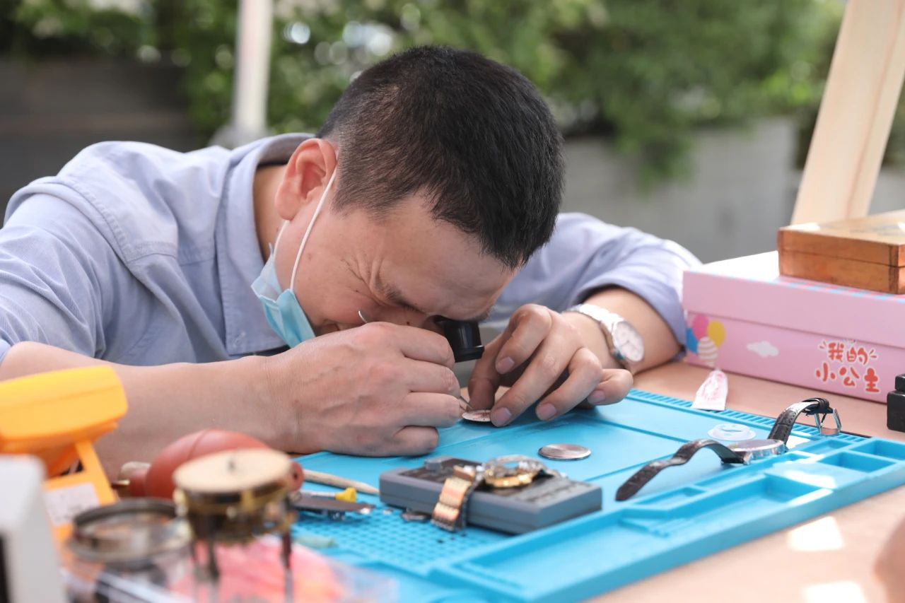 市民吳老伯得知后特意趕來,他告訴記者,自己的手表戴了十多年,沒想到在這里有老師傅幫忙修理,還不收服務(wù)費(fèi),真是太好了,“又有非遺美食,還有手藝人維修,真的很方便!