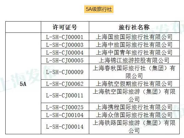 據(jù)上海市旅游局消息,經(jīng)評定和復(fù)核,本市現(xiàn)有A級旅行社327家,包括近期評定的9家4A級和25家3A級旅行社。其中上海國旅國際旅行社有限公司、上海中旅國際旅行社有限公司、上海中國青年旅行社有限公司等10家旅行社被評定為5A級。
