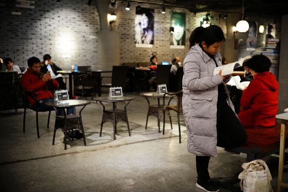 除了白領(lǐng),這里因靠近上;疖囌、臨近地鐵站,很多游客會選擇在這里度過上海的最后一晚,看看書、休息、去趕早班火車。