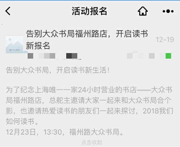 12月19日,福州路大眾書局門口的“致讀者會員的公開信”讓大家停下了腳步,上面寫道:“感恩六年風(fēng)雨共讀,這家全年24小時無休的書店,要打個盹了。因租約到期,我們的營業(yè)時間截止為2017年12月25日21:00,隨后將與各位作別,擇機另尋新址。”