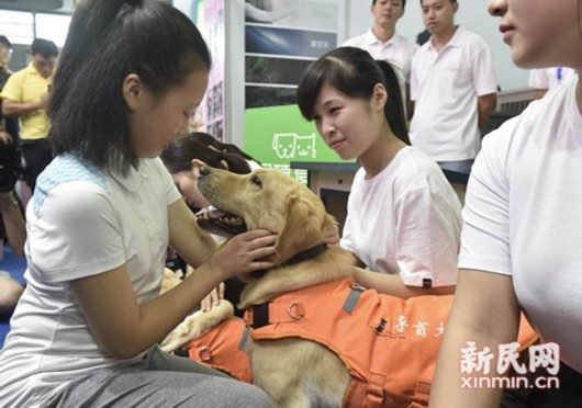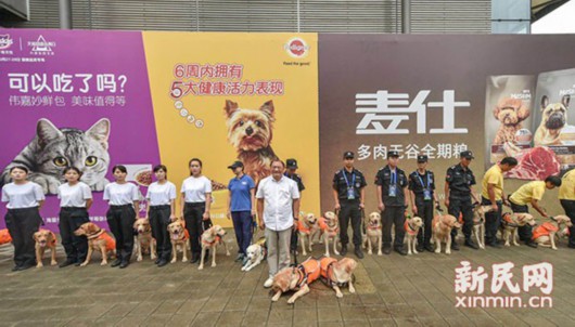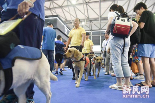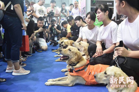 今天上午,二十六條拉布拉多導盲犬現(xiàn)身上海新家國際博覽中心第二十一屆亞洲寵物展現(xiàn)場。