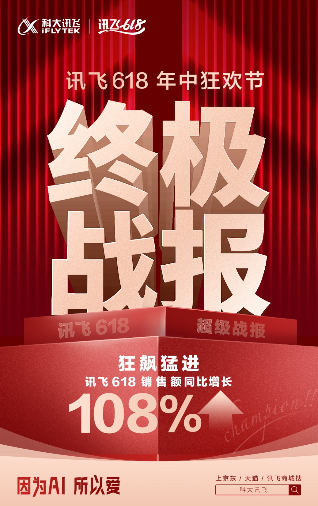 訊飛官微公布的數(shù)據(jù)顯示,訊飛智能錄音筆在今年的“618”期間取得了斐然戰(zhàn)績。科大訊飛全系產(chǎn)品銷售額狂飆猛進(jìn),同比增長108%,其中訊飛智能錄音筆系列連續(xù)三年蟬聯(lián)京東&天貓雙平臺錄音筆品類銷售額冠軍。