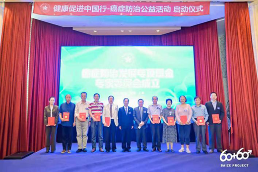 中國健康促進基金會常務(wù)副理事長兼秘書長徐卸古、中國健康促進基金會副秘書長兼癌癥防治發(fā)展專項基金管理委員會副主任委員席立鎖、中國健康促進基金會癌癥防治發(fā)展專項基金管理委員會主任委員崔寶善、中國健康促進基金會癌癥防治發(fā)展專項基金專家委員會副主任委員張景紅、廣東白澤健康科技有限公司董事長白宗科、上海市品牌授權(quán)經(jīng)營企業(yè)協(xié)會創(chuàng)始人楊云、上海市癌癥康復(fù)俱樂部袁正平共同啟動“健康促進中國行-癌癥防治公益活動”。