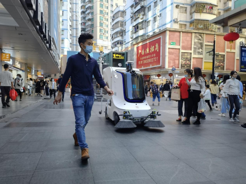 陽(yáng)光環(huán)衛(wèi)機(jī)器人適應(yīng)全天候環(huán)境,可以夜間工作,也在高溫嚴(yán)寒等環(huán)境中持續(xù)作業(yè)。該機(jī)器人以L4級(jí)無(wú)人駕駛技術(shù)為核心,融合了激光雷達(dá)、超聲波雷達(dá)、雙目視覺(jué)等多模態(tài)傳感器,360°感知周邊環(huán)境,實(shí)現(xiàn)自動(dòng)駕駛、智能決策等,對(duì)行人、車輛或其他障礙物進(jìn)行主動(dòng)避讓、繞開,保障安全運(yùn)行。