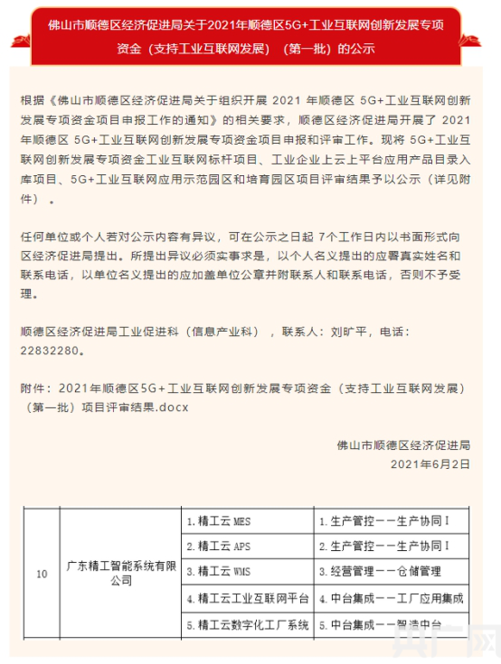 央廣網(wǎng)北京6月17日消息(記者 阮修星 通訊員 劉嘉慧)近日,佛山市順德區(qū)經(jīng)濟(jì)促進(jìn)局公示了《關(guān)于2021年順德區(qū)5G+工業(yè)互聯(lián)網(wǎng)創(chuàng)新發(fā)展專項(xiàng)資金(支持工業(yè)互聯(lián)網(wǎng)發(fā)展)(第一批)》,精工智能的五個(gè)產(chǎn)品列入“2021年順德區(qū)5G+工業(yè)互聯(lián)網(wǎng)創(chuàng)新發(fā)展專項(xiàng)資金項(xiàng)目之順德區(qū)工業(yè)企業(yè)上云上平臺(tái)應(yīng)用產(chǎn)品”名錄。