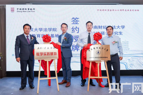當(dāng)天,武漢大學(xué)法學(xué)院法學(xué)教育實踐基地、中南財經(jīng)政法大學(xué)法律碩士研究生實踐創(chuàng)新基地同時簽約授牌落戶中聞律師事務(wù)所,校所雙方將在人才聯(lián)合培養(yǎng)、教育教學(xué)等領(lǐng)域開展合作。與會專家學(xué)者還圍繞加強長江經(jīng)濟(jì)帶不良資產(chǎn)法律服務(wù)、促進(jìn)長江經(jīng)濟(jì)帶高質(zhì)量發(fā)展展開探討。