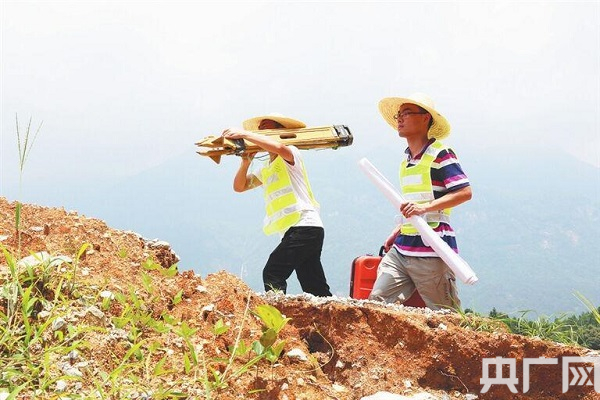 工作人員野外實(shí)地踏勘測(cè)量(央廣網(wǎng)發(fā) 通訊員張華平 查燕萍攝)