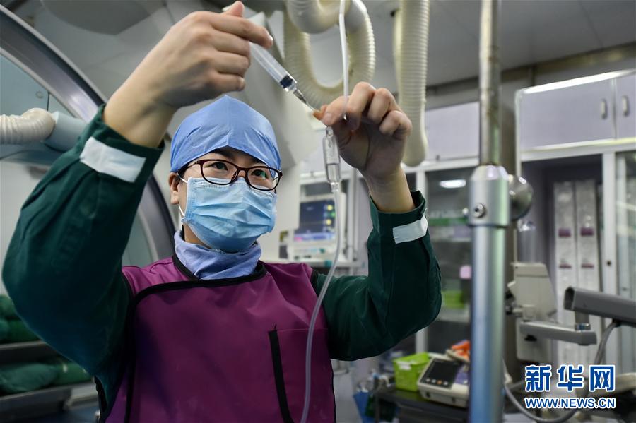 5月11日,山西省太原市中心醫(yī)院心內科導管室護士張娣在照顧病患。 -