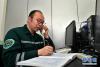 5月11日,許鵬飛在太原市120急救中心接聽急救電話。 -