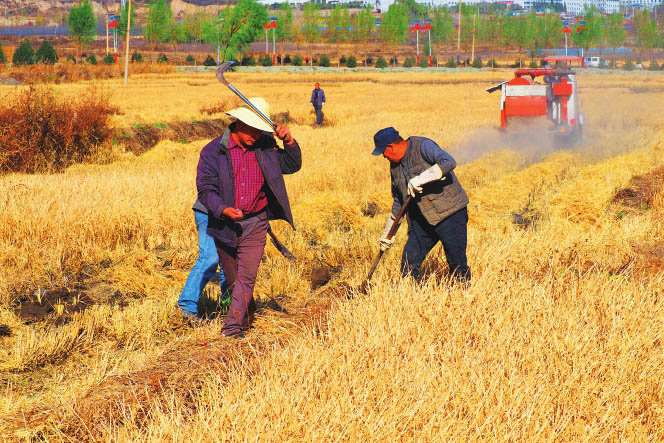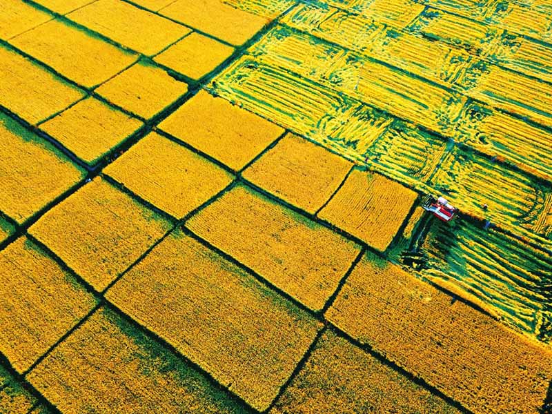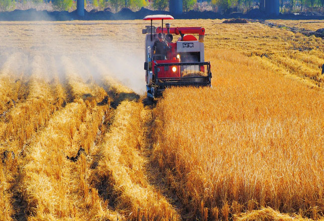 晉祠水稻進(jìn)入機(jī)械化收割的時代。