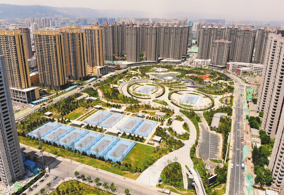 6月4日,俯視之下,太原市濱河體育公園安靜坐落于汾河河畔,美麗壯觀。據(jù)了解,該公園與濱河體育中心相連,將承攬二青會(huì)網(wǎng)球比賽項(xiàng)目。會(huì)后將對(duì)市民開放,再次為省城增添一處運(yùn)動(dòng)休閑的絕佳場(chǎng)所。(記者 阮洋攝)
