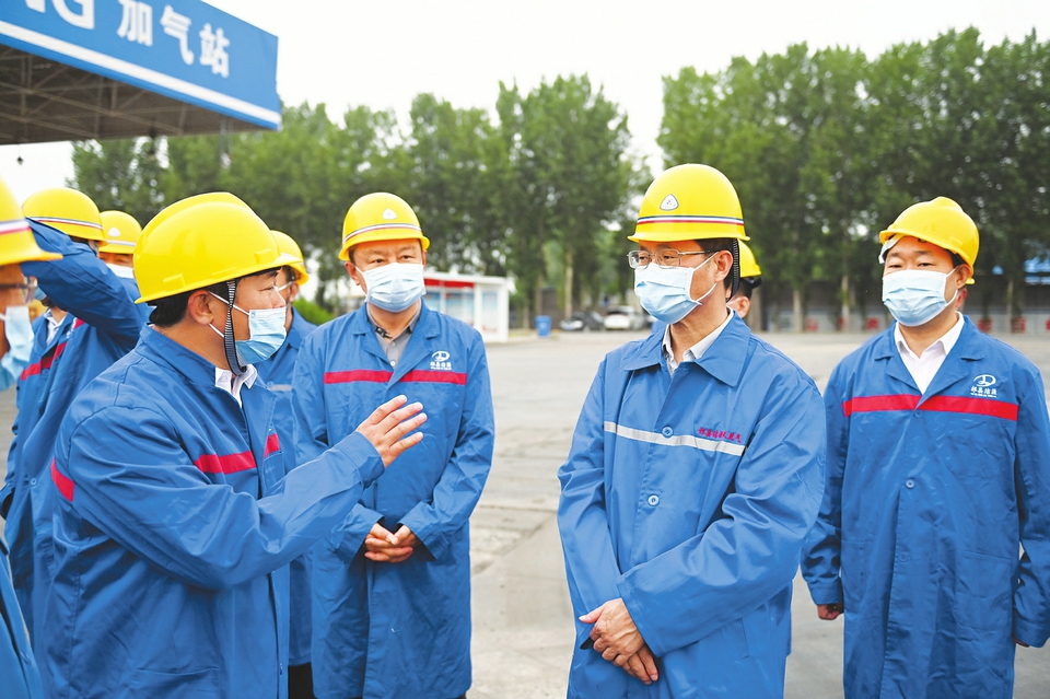 (6月14日,省委副書(shū)記、代省長(zhǎng)藍(lán)佛安來(lái)到祁縣潔源天然氣有限公司,實(shí)地查看燃?xì)鈨?chǔ)存罐體安全防護(hù),詢(xún)問(wèn)節(jié)假日值守、燃?xì)鈨?chǔ)存運(yùn)輸、管網(wǎng)更新改造等情況。 本報(bào)記者阮洋攝)