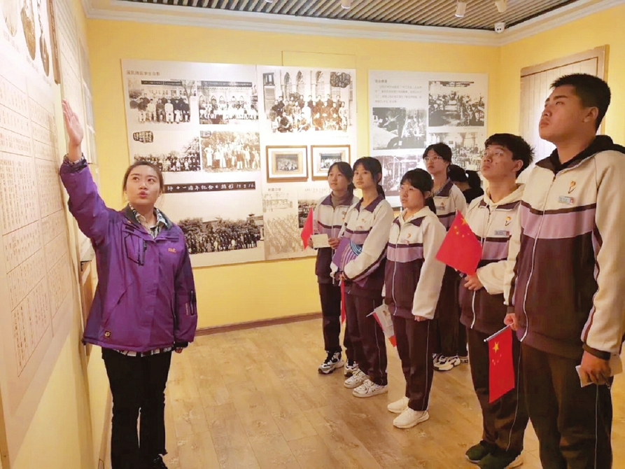 山西國民師范舊址革命活動(dòng)紀(jì)念館講解員為參觀者進(jìn)行講解(山西省文物局 供圖)