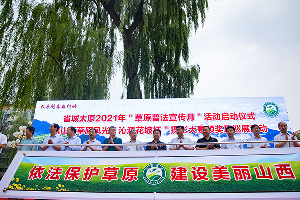 央廣網(wǎng)太原6月16日消息(牛黎)依法保護草原,建設(shè)美麗山西。6月16日上午,在山西省太原西海子公園,山西省“草原普法月”宣傳活動暨首屆山西草原風(fēng)光“沁源花坡杯”攝影大賽頒獎及巡展活動舉行啟動儀式,山西省政協(xié)人口資源環(huán)境委員會、省直工委、山西省司法廳、山西省攝影家協(xié)會等有關(guān)領(lǐng)導(dǎo)參加本次活動。