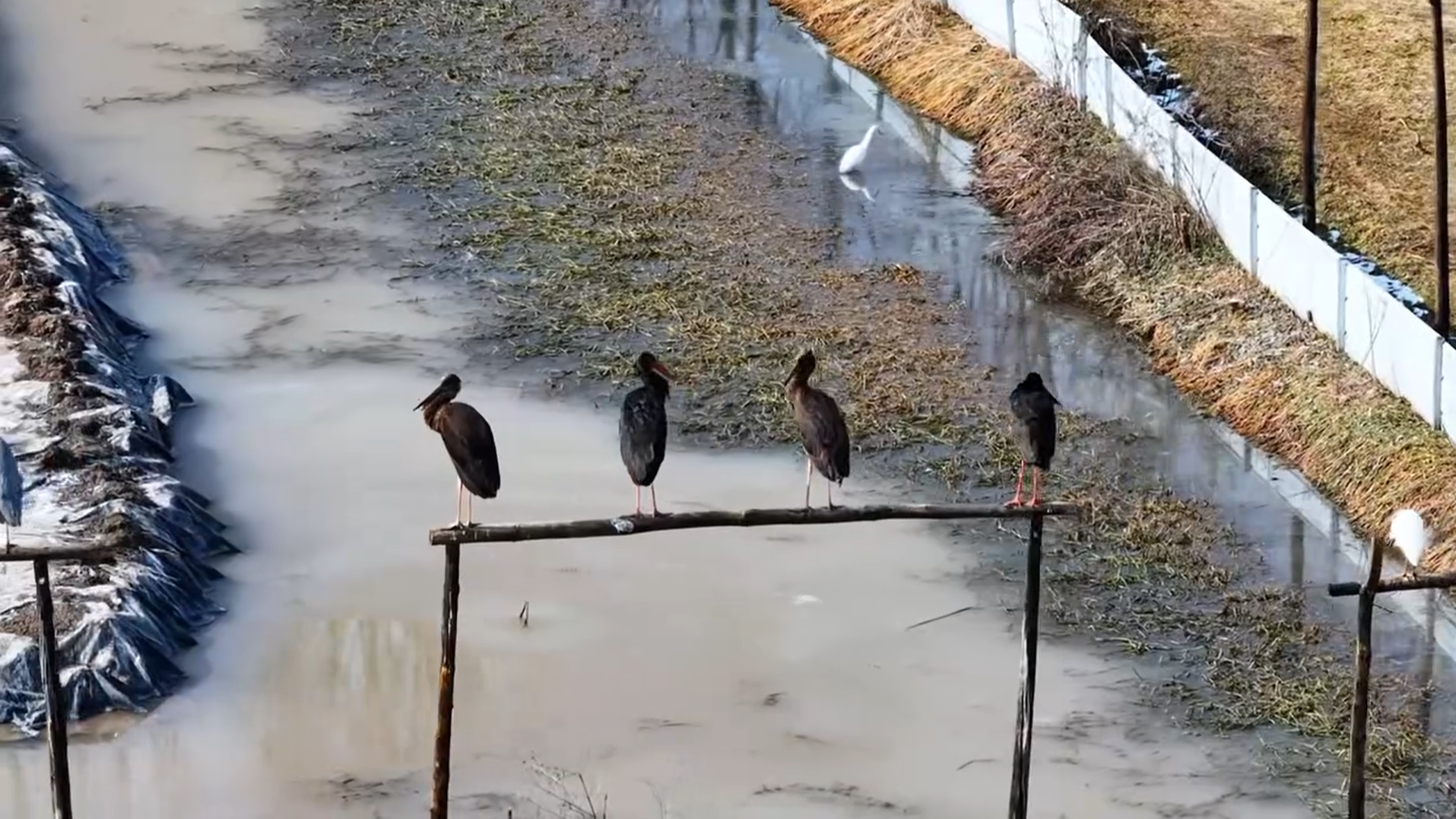 1月6日,在西安市長安區(qū)王曲街道蛤蟆灘濕地,50余只被稱為“鳥中國寶”的國家一級保護動物黑鸛,在此悠然棲息。