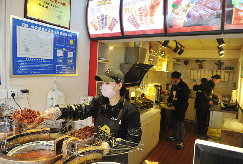 記者在西安市小寨賽格購(gòu)物中心“袁家村”看到,所有餐品制作窗口全部采用了矮墻或玻璃隔斷的“明廚亮灶”方式,消費(fèi)者可以看到廚師的操作過(guò)程。在煎餅售賣窗口,廚師告訴記者,“透明操作間”的設(shè)立不僅是食品安全的保證,增加了消費(fèi)者與廚師之間的互動(dòng)與信任。也成了餐飲文化的一種展示,有的消費(fèi)者會(huì)用手機(jī)拍照或者拍小視頻分享給朋友,也是對(duì)特色餐飲店的一種宣傳。