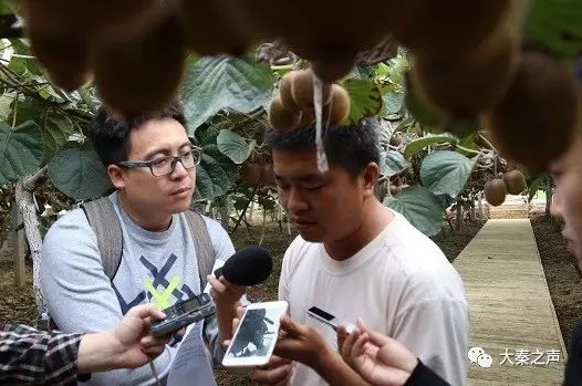 李凱在獼猴桃園與農(nóng)業(yè)專家通話咨詢獼猴桃種植問題