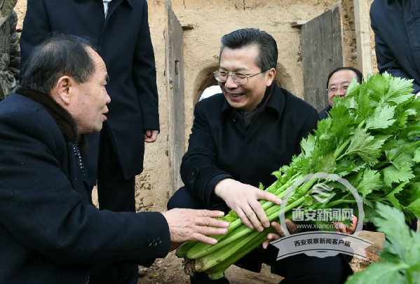 西安市委書記王永康走進(jìn)通遠(yuǎn)鎮(zhèn)何村無公害蔬菜大棚與種植戶親切交談,詢問大棚造價、蔬菜種植和銷售等狀況 (西安日報 記者 李欣攝)