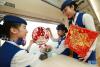 1月12日,春運前一天,西安客運段的乘務(wù)員們?yōu)榱私o車廂營造出暖暖的年味兒,購買了窗花、對聯(lián)、福字等節(jié)日喜慶物品裝飾車廂,讓春運期間回家過年的旅客一邁進車廂便能感受到濃郁的年味氣息。同時,他們還組織開展了“迎新春、送福字”活動,讓旅客帶福回家,與家人共度新春佳節(jié)。(通訊員 王曙天) -